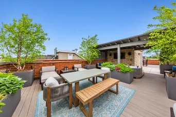 Experience true penthouse living in this exceptional, sun-drenched 2-bedroom, 2-bath luxury residence with a bonus loft/office and one of the most impressive private rooftop decks in Lakeview. This one-of-a-kind home offers unobstructed, lifetime views of Wrigley Field, the skyline, and sweeping 360-degree city views! Previously featured on HGTV's House Hunters, this property delivers a rooftop experience unlike anything else in the city. Inside, refined craftsmanship and high-end finishes define every space. The chef's kitchen is outfitted with Wolf, Bosch, and Sub-Zero appliances, upgraded quartz countertops, and custom millwork. The open-concept living area features a fireplace, coffered ceilings, wainscoting, and built-in cabinetry, all complemented by abundant natural light and a private front balcony. The spacious primary suite includes a walk-in closet and its own private rear balcony, while spa-inspired bathrooms offer radiant heated floors, dual vanities, a steam shower with five shower heads, and a whirlpool tub. The loft level includes a 48-bottle wine refrigerator and serves as the gateway to the show-stopping rooftop deck-professionally designed and renovated with new decking, extended privacy walls, automatic lighting, integrated audio, and a full irrigation system for the mature trees and lush planters. The rooftop is thoughtfully laid out with multiple zones for lounging, dining, cooking, and gathering around the fire pit, creating a true outdoor living room with breathtaking sunset views. Additional highlights include a new furnace and A/C (2021), NEW in-unit washer/dryer, smart home features with Nest locks and thermostat, a professional network system with WiFi and ethernet throughout, a commercial-grade water pump ensuring excellent pressure across all levels, and a garage parking space with extra storage. Perfectly located near public transportation, shopping, dining, nightlife, and everything Lakeview has to offer, this extraordinary penthouse is truly in a class of its own. Explore the property in 3D-click the 3D tour to experience every detail firsthand.